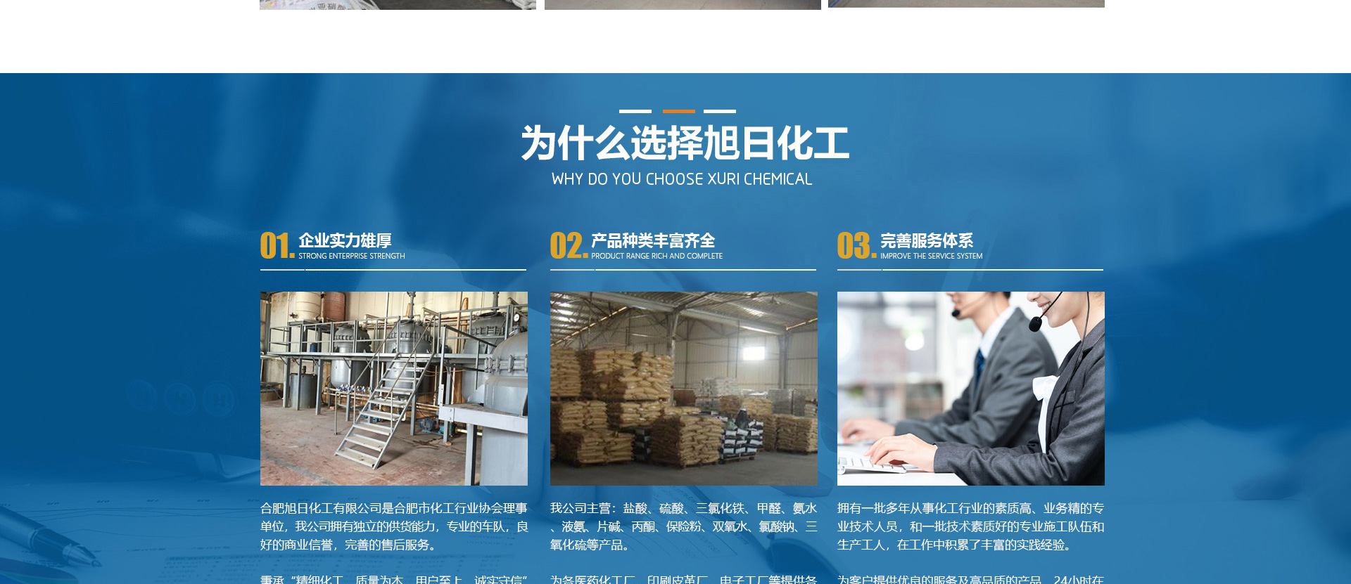 合肥旭日化工有限公司是合肥市化工行業(yè)協(xié)會(huì)理事單位,該公司擁有獨(dú)立的供貨能力,專業(yè)的車隊(duì),良好的商業(yè)信譽(yù),完善的售后服務(wù)。秉承“精細(xì)化工、質(zhì)量為本、用戶至上、誠實(shí)守信”的企業(yè)理念。從事各類化工溶劑和原料的國內(nèi)貿(mào)易;為各醫(yī)1藥化工廠、印刷皮革廠、電子工廠等提供各種化工原料配套采購。目前,公司正朝著以貿(mào)易為基礎(chǔ)、以實(shí)業(yè)為依托,全球采購、全國銷售,內(nèi)外貿(mào)一體化,上下游一體化,具有綜合增值能力和復(fù)合競爭能力化工原料供應(yīng)商。本公司主要經(jīng)營的產(chǎn)品有:鹽酸、硫酸、三氯化鐵、甲醛、氨水、液氨、片堿等。合肥旭日化工有限公司為客戶提供優(yōu)良的服務(wù)及高品質(zhì)的產(chǎn)品,本公司經(jīng)銷的各種產(chǎn)品不僅在安徽地區(qū)深受用戶好評,而且具有很高的市場占有率,產(chǎn)品行銷全國各地區(qū)。